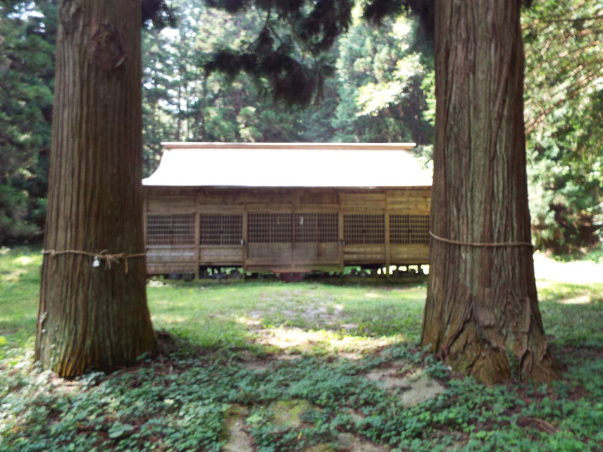 杉木立の中、苔むした石段の先に社が見えてきました。